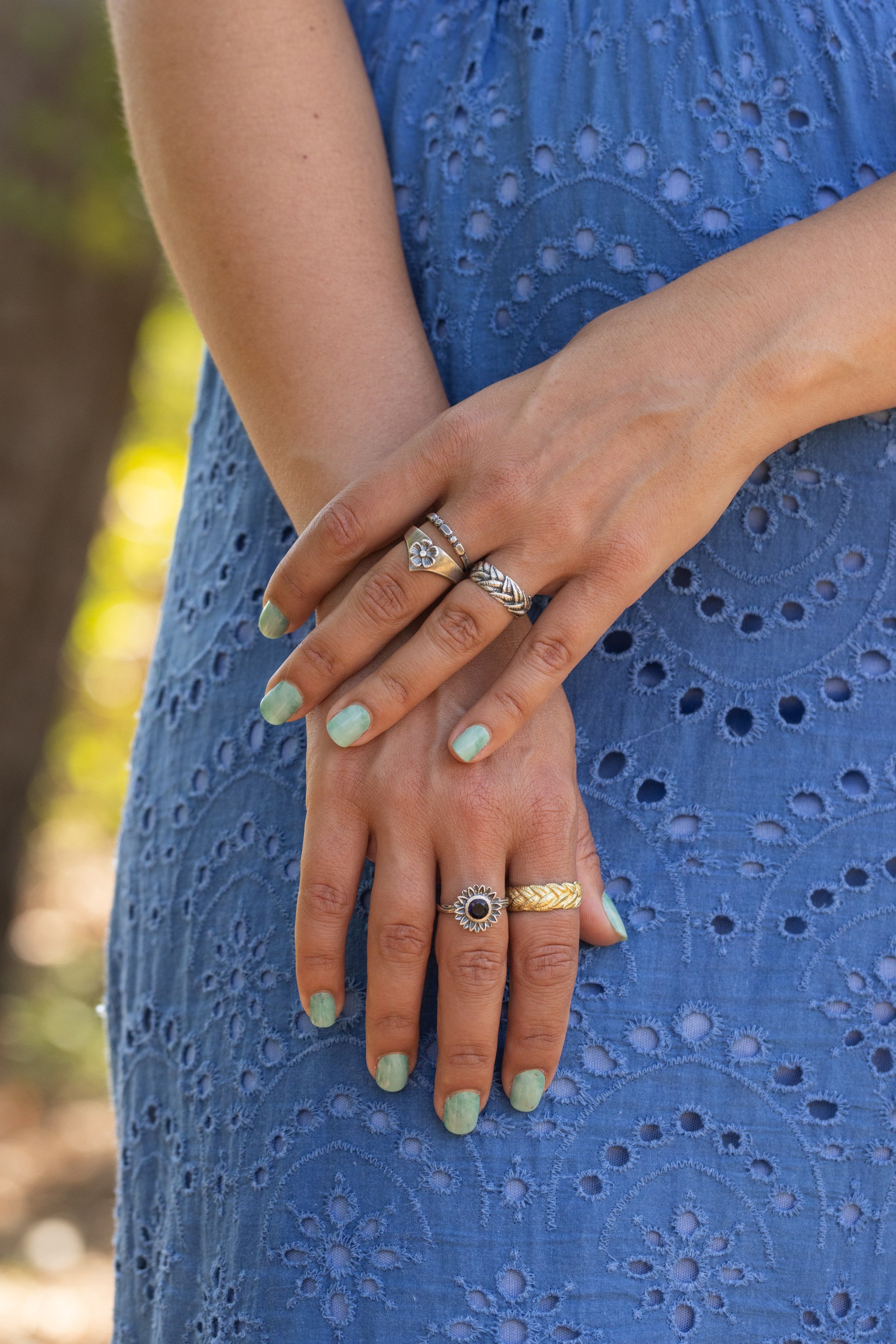 All jewelry is made in solid sterling silver or gold. Each piece is handmade with quality, precious materials meant to stand the test of time.