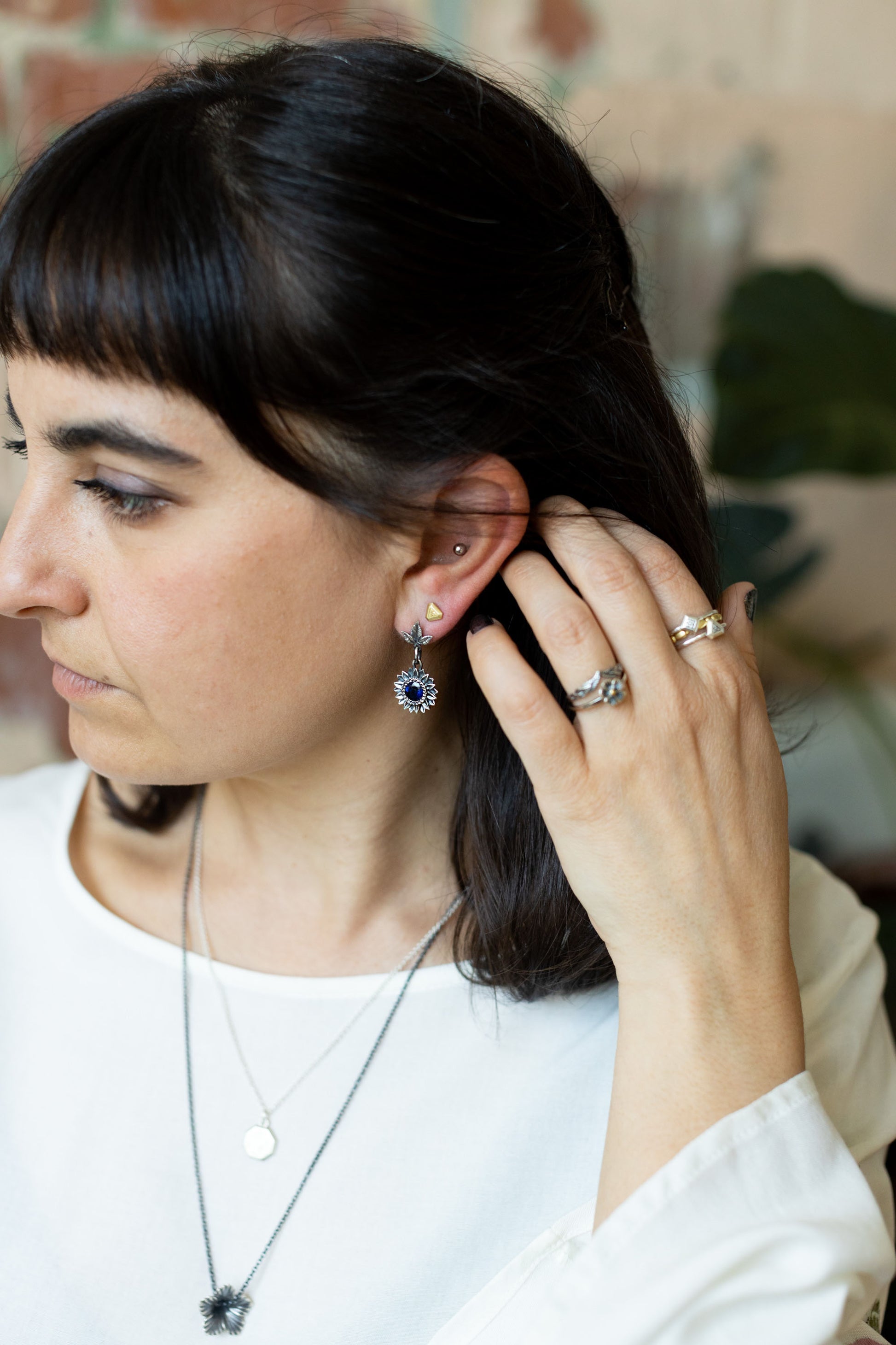All jewelry is made in solid sterling silver or gold. Each piece is handmade with quality, precious materials meant to stand the test of time.