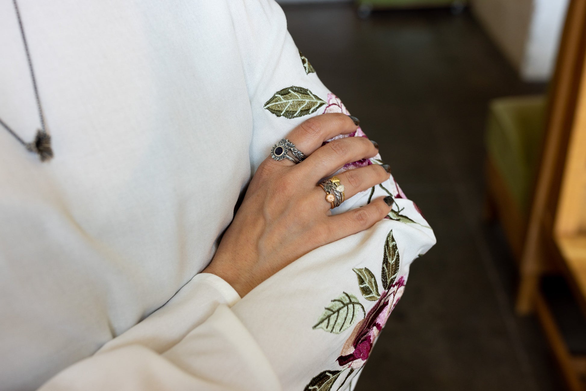 All jewelry is made in solid sterling silver or gold. Each piece is handmade with quality, precious materials meant to stand the test of time.
