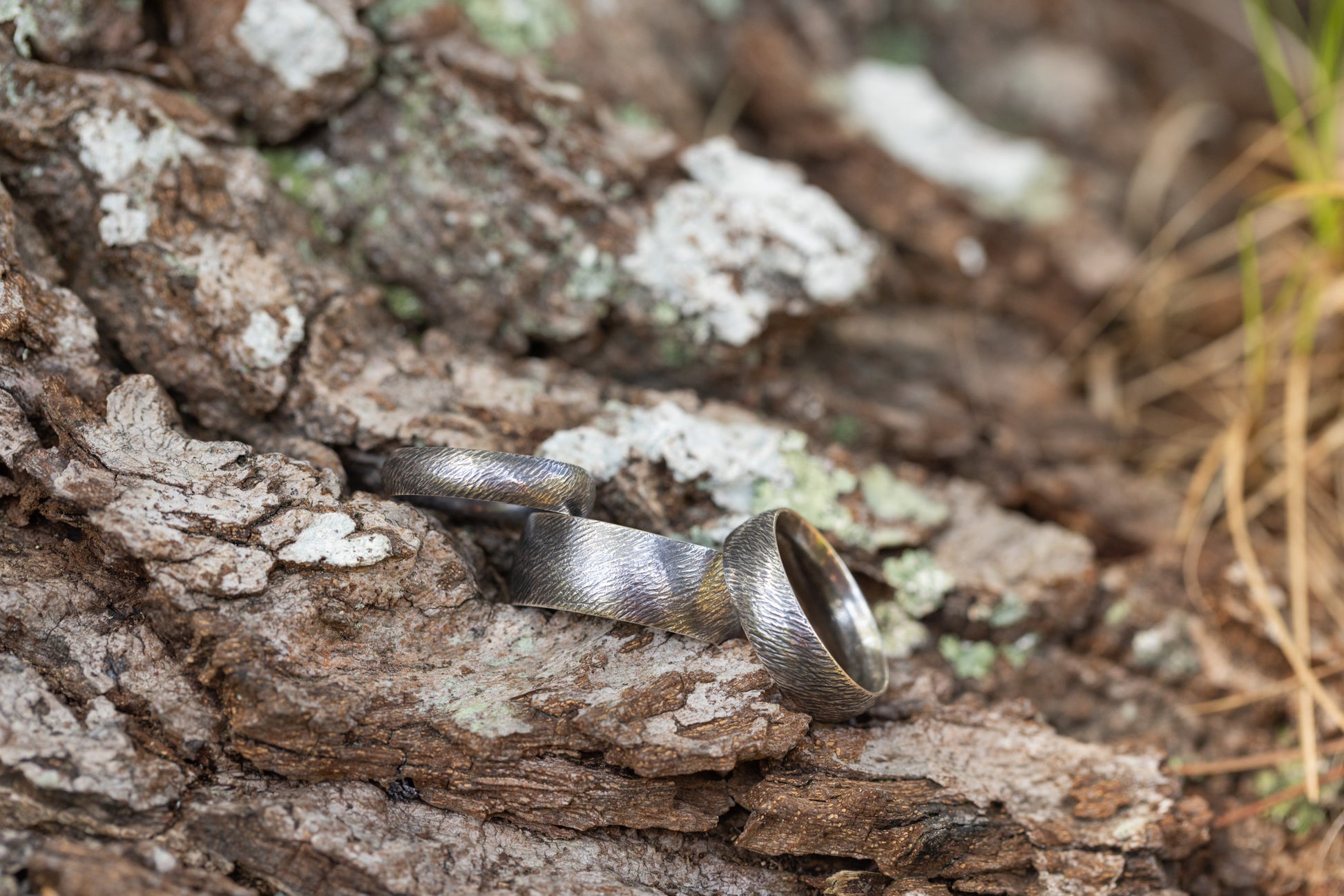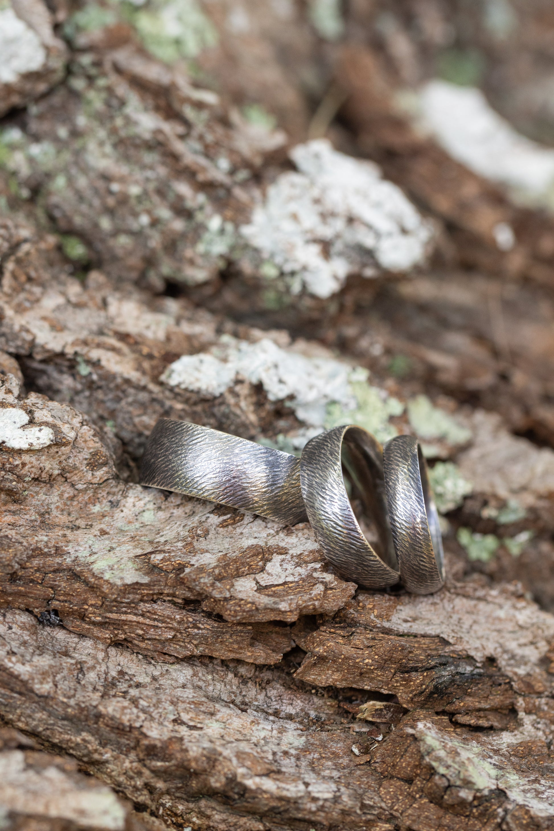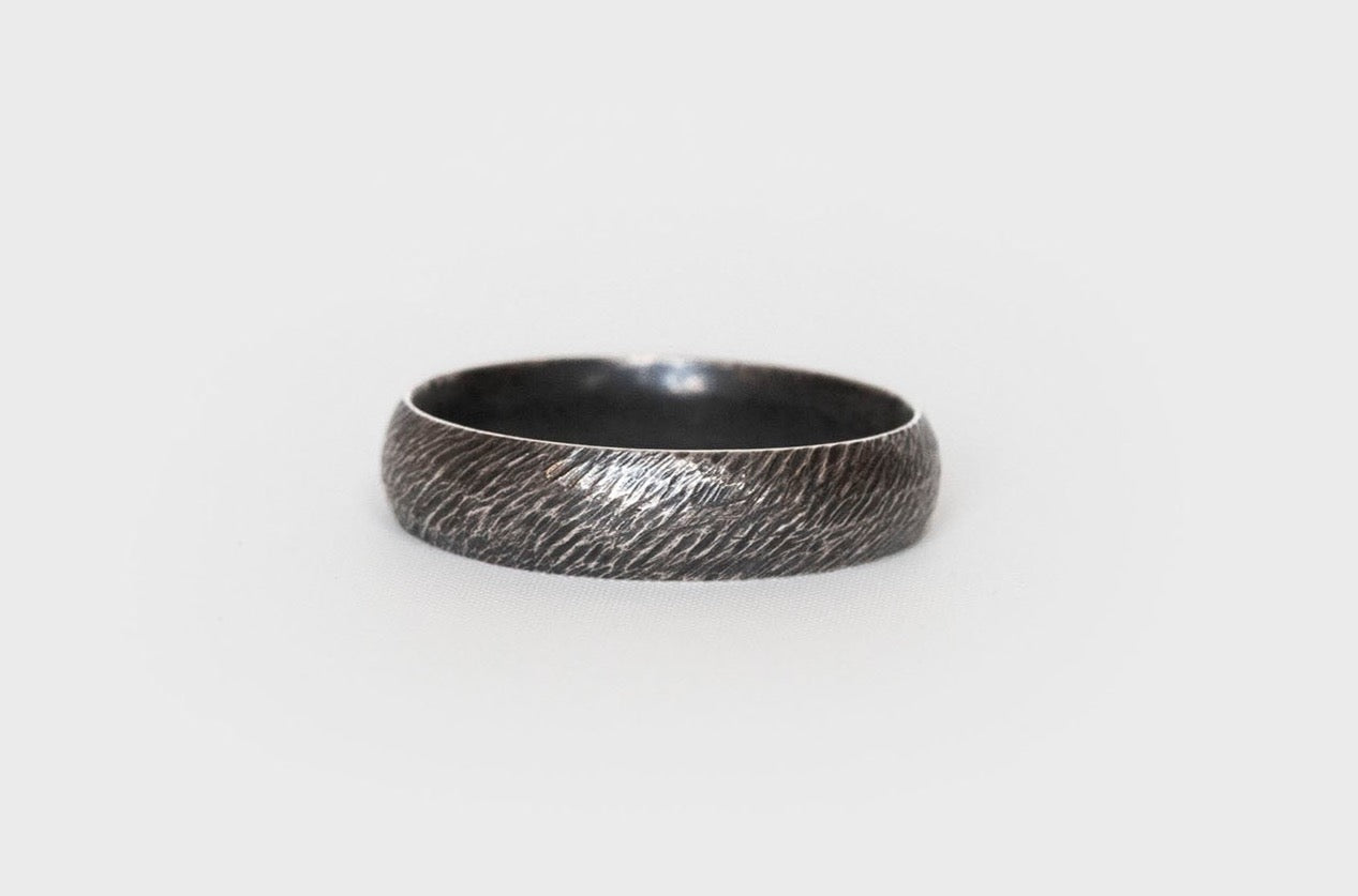The Textured Band is your classic "half-round" ring shape with an unconventional finish. It's a straightforward shape, comfortable to wear and made with a rugged texture.